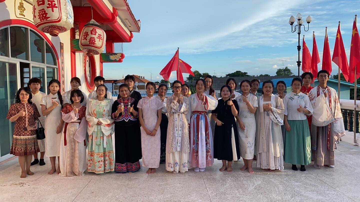 On October 1st, 2023, Associate Professor Dr. Senor Klinngam, the President of Phetchaburi Rajabhat University, along with university executives and the International Education Center, including: 1. Associate Professor Rapiwan Thiamdetch, Advisor to the President, 2. Associate Professor Pojanart Buakiew, Vice President, 3. Dr. Kritsada Tangchaval, Vice President, 4. Associate Professor Dr. Kanjana Boonsong, Dean of the Faculty of Education, and 5. Dr. Pornpen Juriyanyanon, Acting Director of the International Education Center, accompanied 23 students from Qujing Normal University dressed in traditional Chinese attire to participate in celebrating the 74th anniversary of the People’s Republic of China at the Suwan Sapphaya Foundation, as an honor to the Chinese Association of Phetchaburi Province. The performance consisted of two parts: the first part included a harmonious song performance titled ‘Me and My Motherland,’ conveying love and attachment to their homeland no matter where they are, and the second part featured Chinese dance depicting the legend of unrequited love between Nai Pla and Sanom Hongtai. The performance by the students from Qujing Normal University received high praise and applause from members of the Chinese Association of Phetchaburi Province.”
