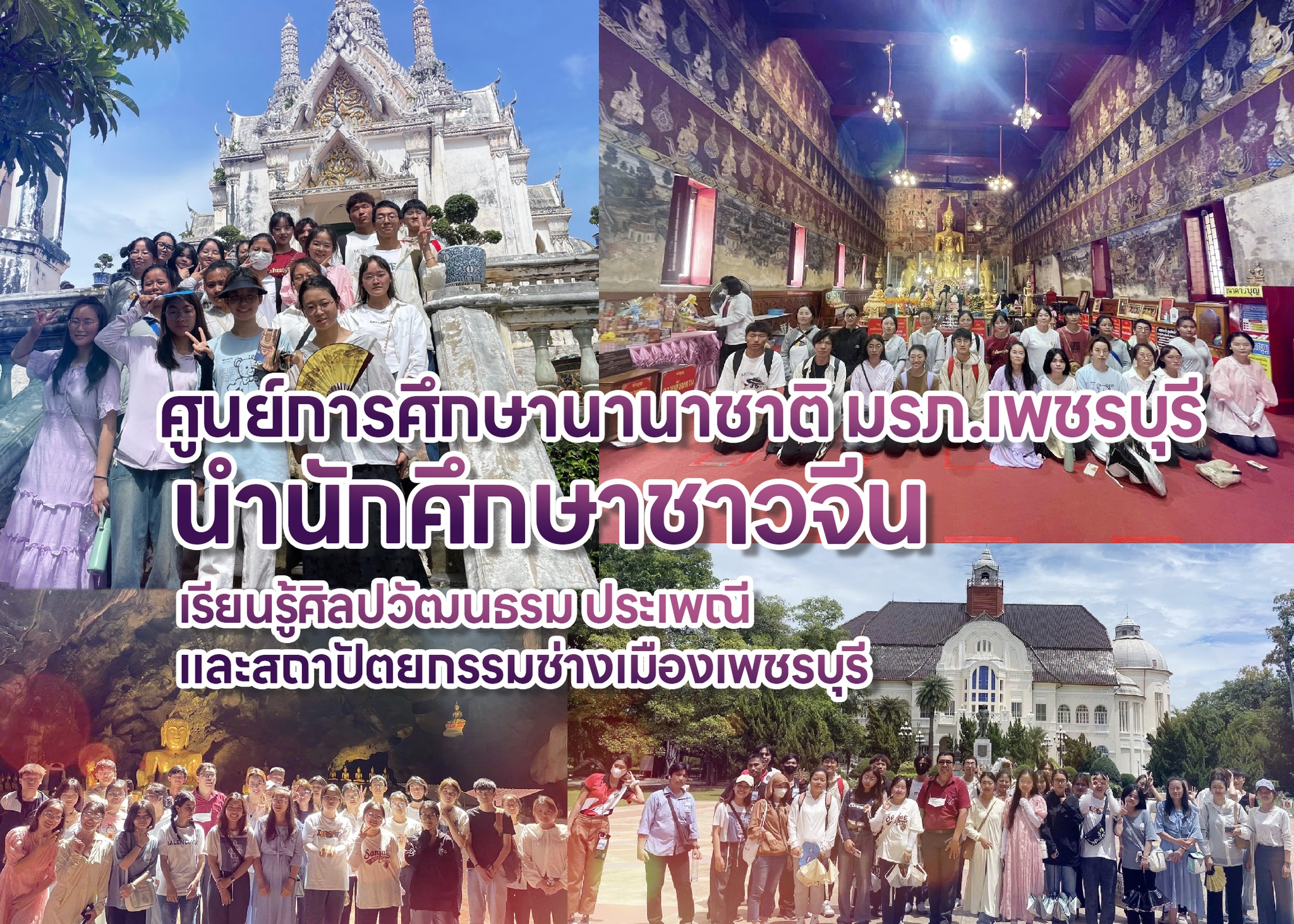 On September 14-15, 2023, Mr.Sarawut Dongbao, a faculty member of Information Science, along with faculty members from the International Education Center, accompanied 2nd and 3rd-year students of the Library Science and Digital Media Management program to explore cultural and architectural heritage sites, as well as the history of Phetchaburi Province, with 22 Chinese students studying the Thai language at Phetchaburi Rajabhat University. The tour included visits to Phra Nakhon Khiri (Khao Wang), Wat Mahathat Wora Maha Wihan (Phra Aram Luang), Wat Khaoi, Wat Phra Phutthaisawan, Wat Tham Khao Luang, and Phra Ram Ratchaniwet Palace. The Chinese students showed great interest and received warm hospitality from the local people of Phetchaburi Province, engaging in conversations and exchanges along various routes they explored within the university campus. Moreover, they received generous hospitality from Phravatiwarawat (Kla Wiratno), the abbot of Wat Mahathat Wora Maha Wihan, along with the monks, who provided them with a midday meal. Additionally, they were briefed on the craftsmanship of Phetchaburi Province at Wat Mahathat.